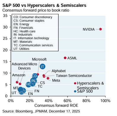 Except now that they are (presumably) finding better uses of capital, the critics say “look how aggressive the spending is, this is unsustainable!! what will be the ROI??” To be fair, I think it’s fine to question how profitable this buildout will be, but I also don’t think we’re going to get an answer to that question in 2026. I will say this though: the capex boom has mostly been financed by internally generated cash flows (with the exception of Oracle and Meta’s Hyperion data center). If these companies begin to aggressively ramp financing via debt then I think there’s reason for concern3.