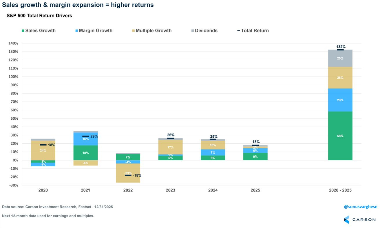 The bottom-line as I see it is that earnings are strong, margins are expanding, the economy continues to hum along (albeit with unemployment likely to continue trending higher), inflation is under control and there’s still fiscal and monetary impulse at our backs. There are clearly ways this can go wrong: there’s uncertainty around tariffs, geopolitical tensions (China/Taiwan I’m sure will be more center-stage this year), a new Fed Chair10, midterms11 and the looming fragility of everyone living & dying by tech earnings. Climbing walls of worry are necessary to extend bull markets. When investors suggest there is nothing to worry about is when things go really bad.
